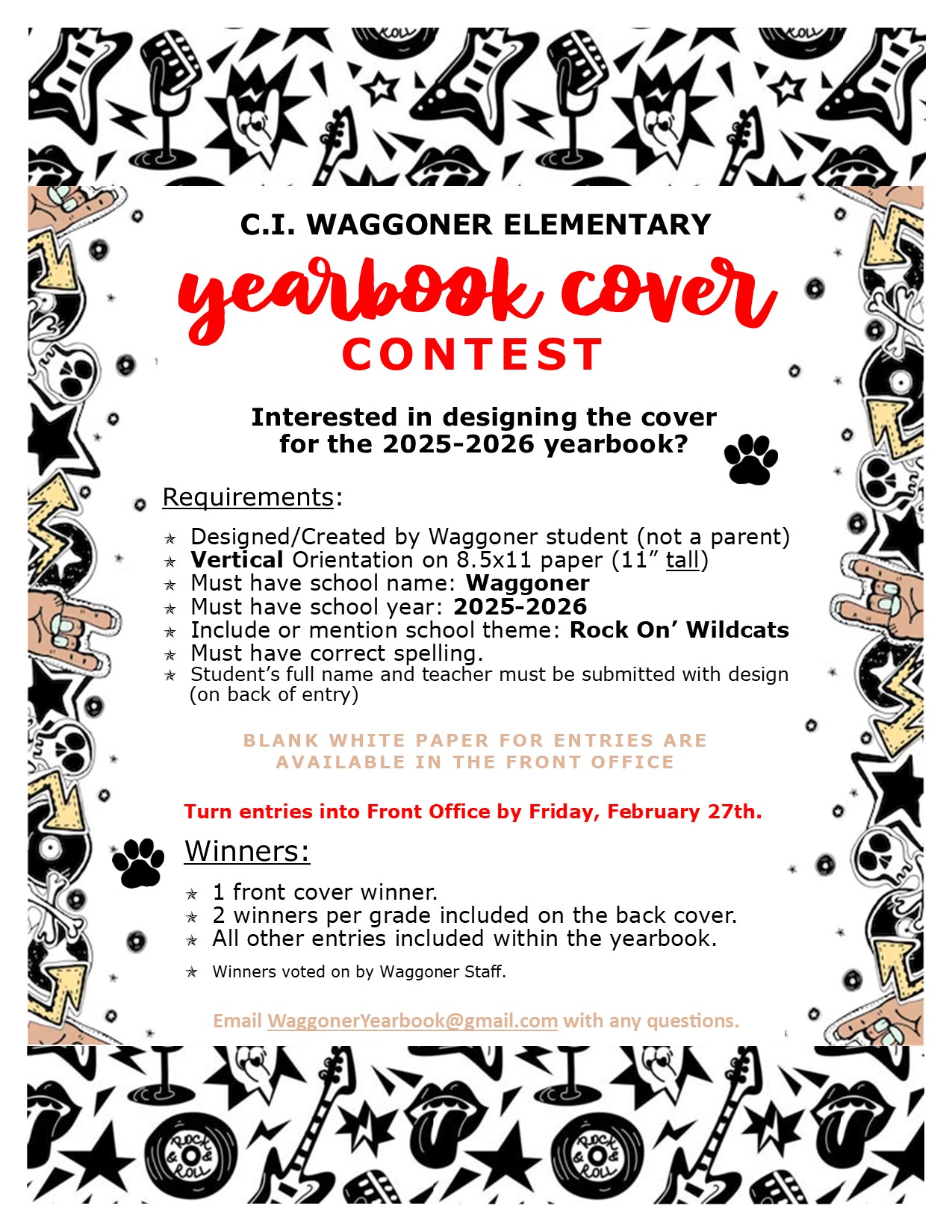 Winners: 1 front cover winner. 2 winners per grade included on the back cover. All other entries included within the yearbook. Winners voted on by Waggoner Staff.